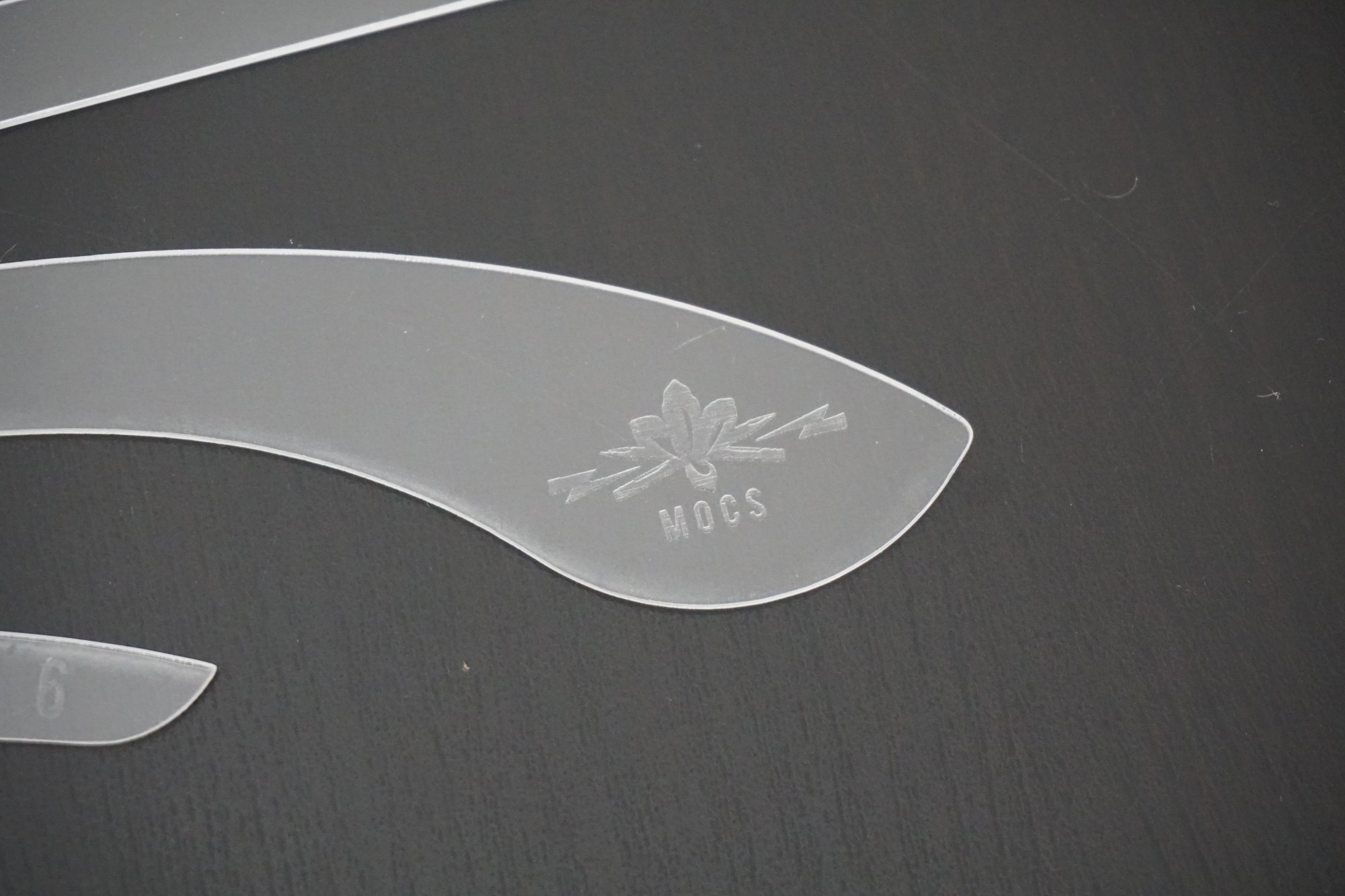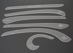 A set of 6 drawing sweeps. They measure approx 11.5 in/ 290mm 1/16th in clear acrylic. The edges will be finished and sanded for a smooth line.