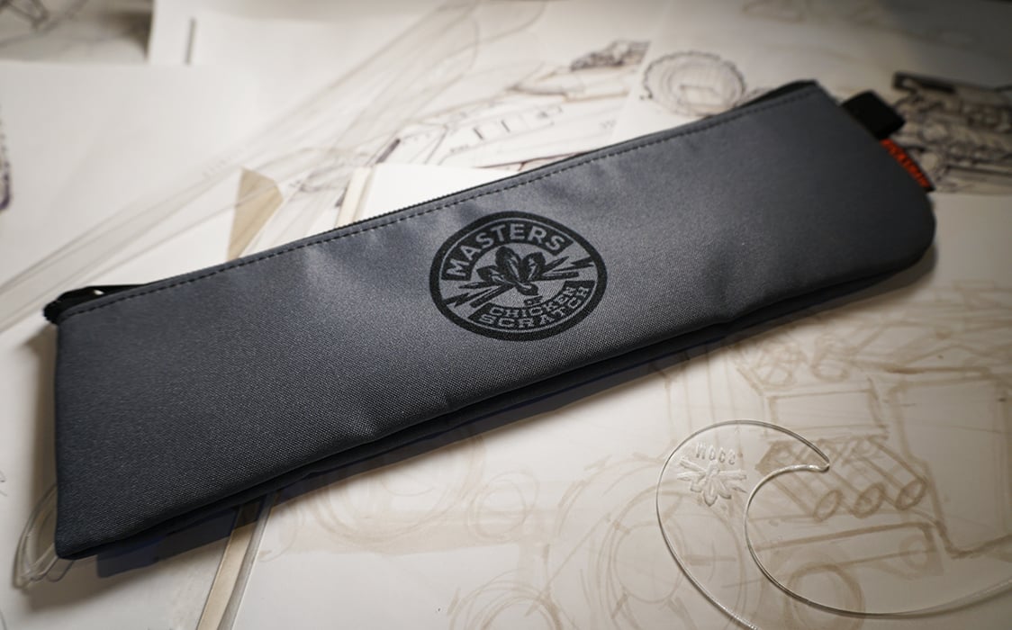 Handcrafted bag by Rickshaw Bag Co. Made with Nylon Cordura® material to provide a rugged exterior to protect your sweeps, pens and pencils. Double lined interior with finished stripping provides a high-quality finish to the inside. The durable and dependable YKK zipper is used to finish off this epic utility bag. It Measures 12"X3.5" to perfectly hold your set of sweeps.